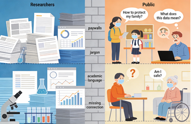 Sitting with that reality was uncomfortable. Our careful research, all those hours in the lab, all those datasets and peer reviews—wasn’t changing people’s lives. Not because the research was wrong, but because we were only talking to each other or when talking to the public, doing it wrong.